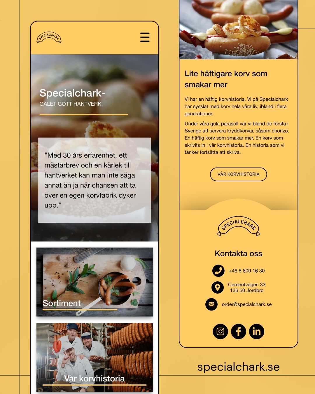 På webbsidan kan man läsa mer om deras sortiment, ta del av deras korvhistoria, se aktuella återförsäljare och ta kontakt med fabriken.